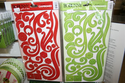 Take a look at all of this cute Bo Bunny stuff. Lots of great ribbon, chipboard swirls, brads, stickers, paper, sanding tools, etc.